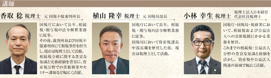 講師陣は、元国税不服審判所長、元国税局幹部など、