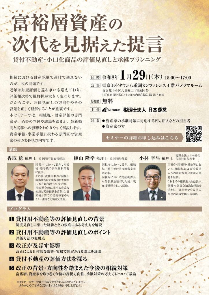 本セミナーでは、相続税・財産評価の第一線で実務を担ってきた専門家が登壇し、次のテーマを掘り下げます。